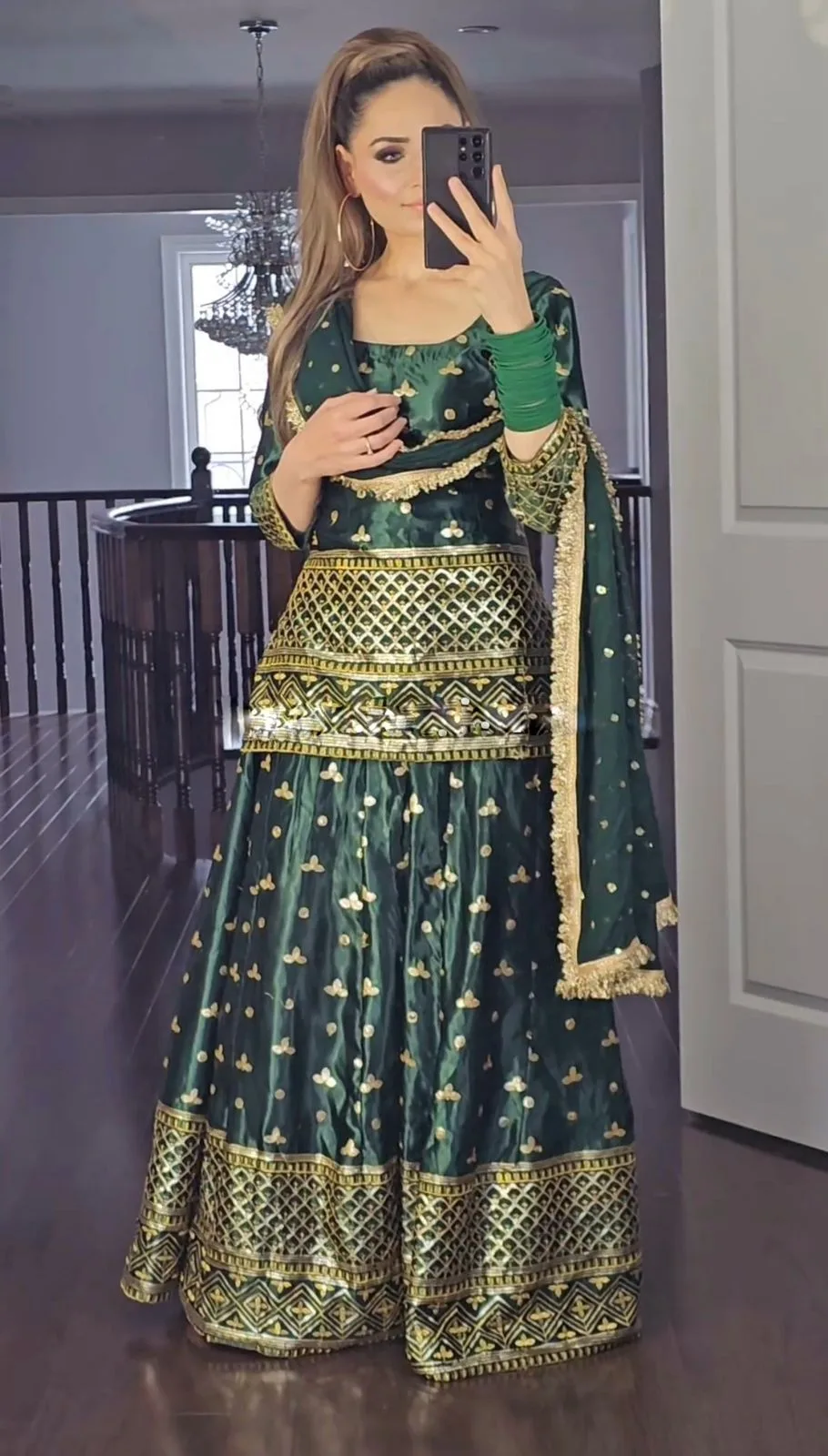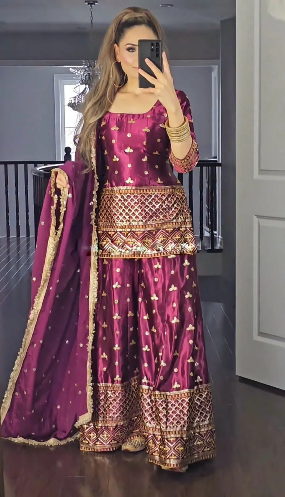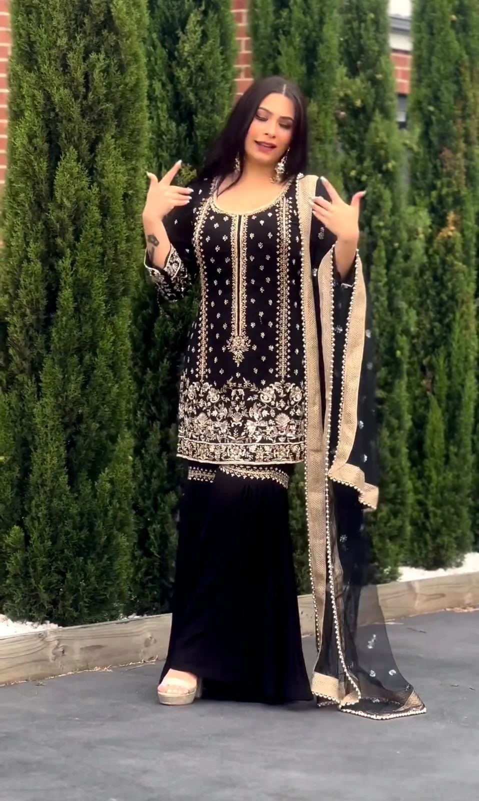 Heavy Faux Georgette Top with Embroidery Sequin, Sharara, and Dupatta Set