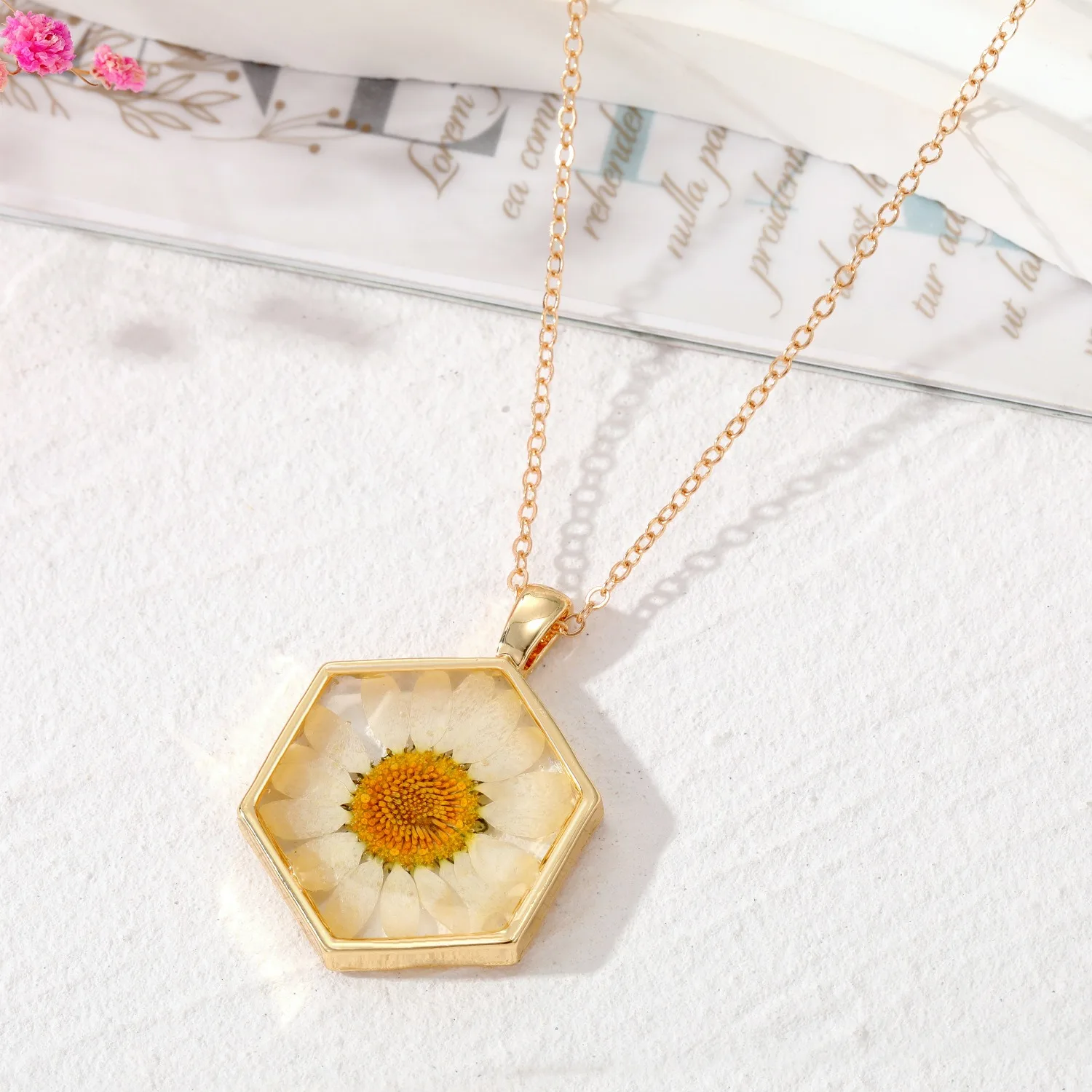 Women’s Bohemian Transparent Dried Flower Resin Necklace With Elegant Design | Eye-Catchy Trendy Necklace (White & Yellow)
