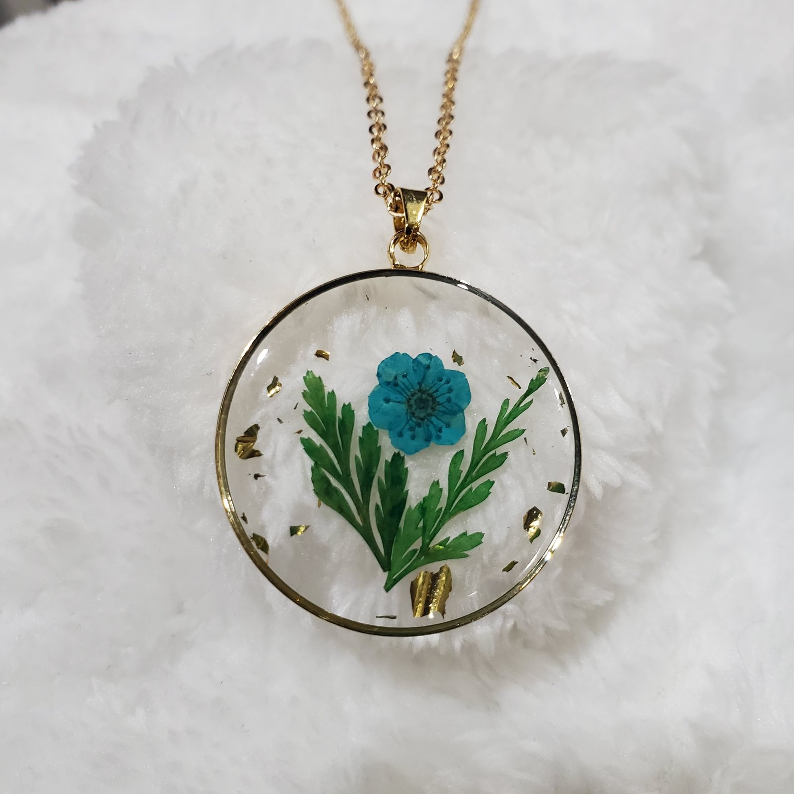 Women’s Bohemian Transparent Dried Flower Resin Necklace With Elegant Design | Eye-Catchy Trendy Set for Parties, Festive Occasions (Green Blue)