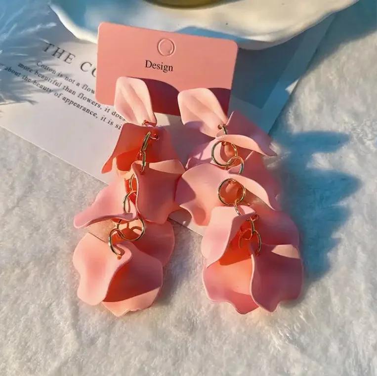 Women’s Fashionable Acrylic Pink Flower Petals Earrings Set With Elegant Design | Eye-Catchy Lightweight Jhumki Set | Festive Ocassion Wear