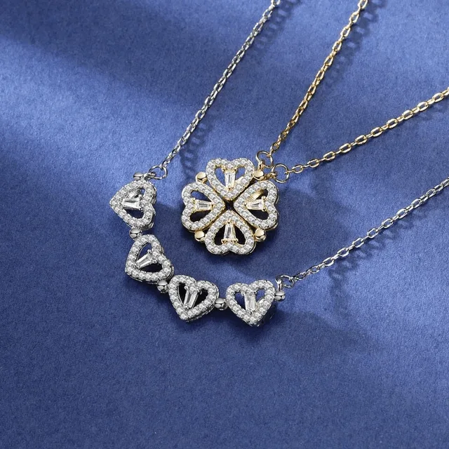 Azaayah Radiant Clover Heart Pendant Necklace with Sparkling Crystals, 2 in 1 Magnetic, for Women
